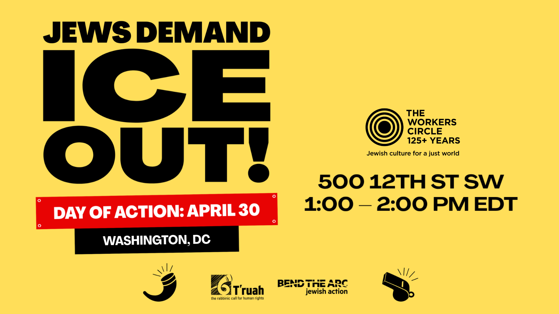 On April 30, Jews around the country will gather to demand ICE OUT. We stand with immigrants and reject ICE brutality and violence. We want ICE out of our schools and workplaces, out of our parks and streets, out of our places of worship, and out of communities everywhere. Grounded in our sacred teachings, we will make the moral case that this system is both a failure of policy and of conscience, and that it does not have to be this way.