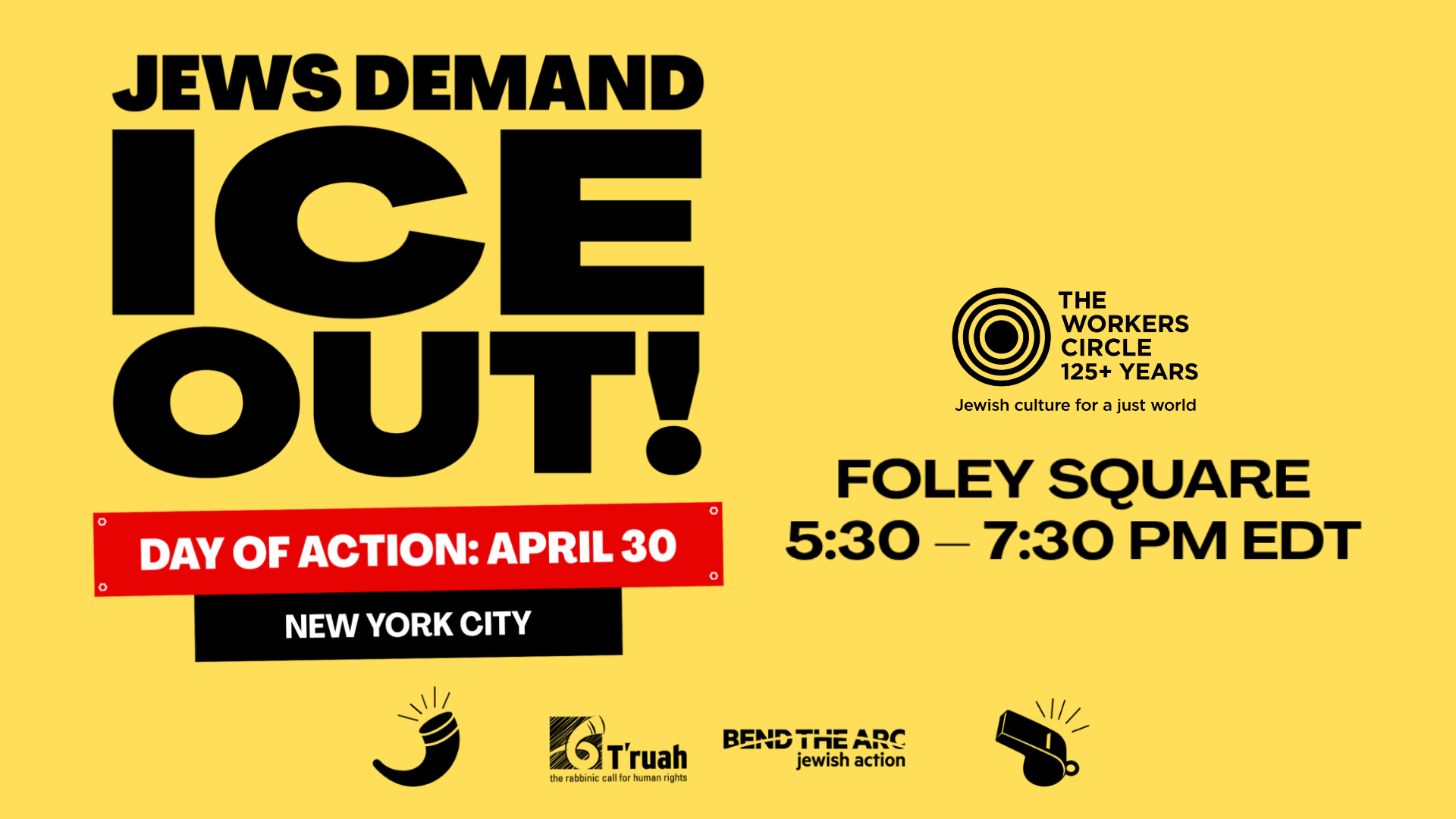 On April 30, Jews around the country will gather to demand ICE OUT. We stand with immigrants and reject ICE brutality and violence. We want ICE out of our schools and workplaces, out of our parks and streets, out of our places of worship, and out of communities everywhere. Grounded in our sacred teachings, we will make the moral case that this system is both a failure of policy and of conscience, and that it does not have to be this way.